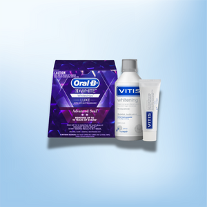 Experience a radiant white smile with our Luxury Whitening Bundle. This set combines everything you need for an effective whitening routine. The Oral-B 3D Whitening Strips Luxe Advanced Seal tackle stubborn stains and gradually whiten your teeth for long-lasting results.